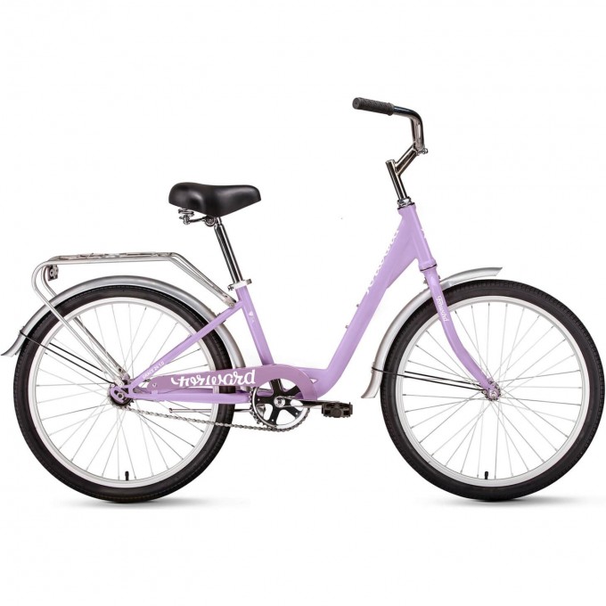 Комфортный велосипед для удовольствия и покорения города и сердец. Доступный бюджетный женский городской односкоростной велосипед с ножным тормозом. Данная модель в сиреневом цвете с рамой 13".